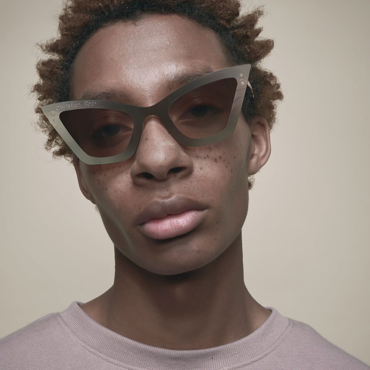 The twilight years of punk spring to life in the form of Kardo, a rebellious cat eye frame inspired by the countercultural spirit of St. Mark’s Place. Card’s shimmering metallic lenses are encased within a vibrant acetate frame using Christian Roth’s signature lens-in-lens technology.